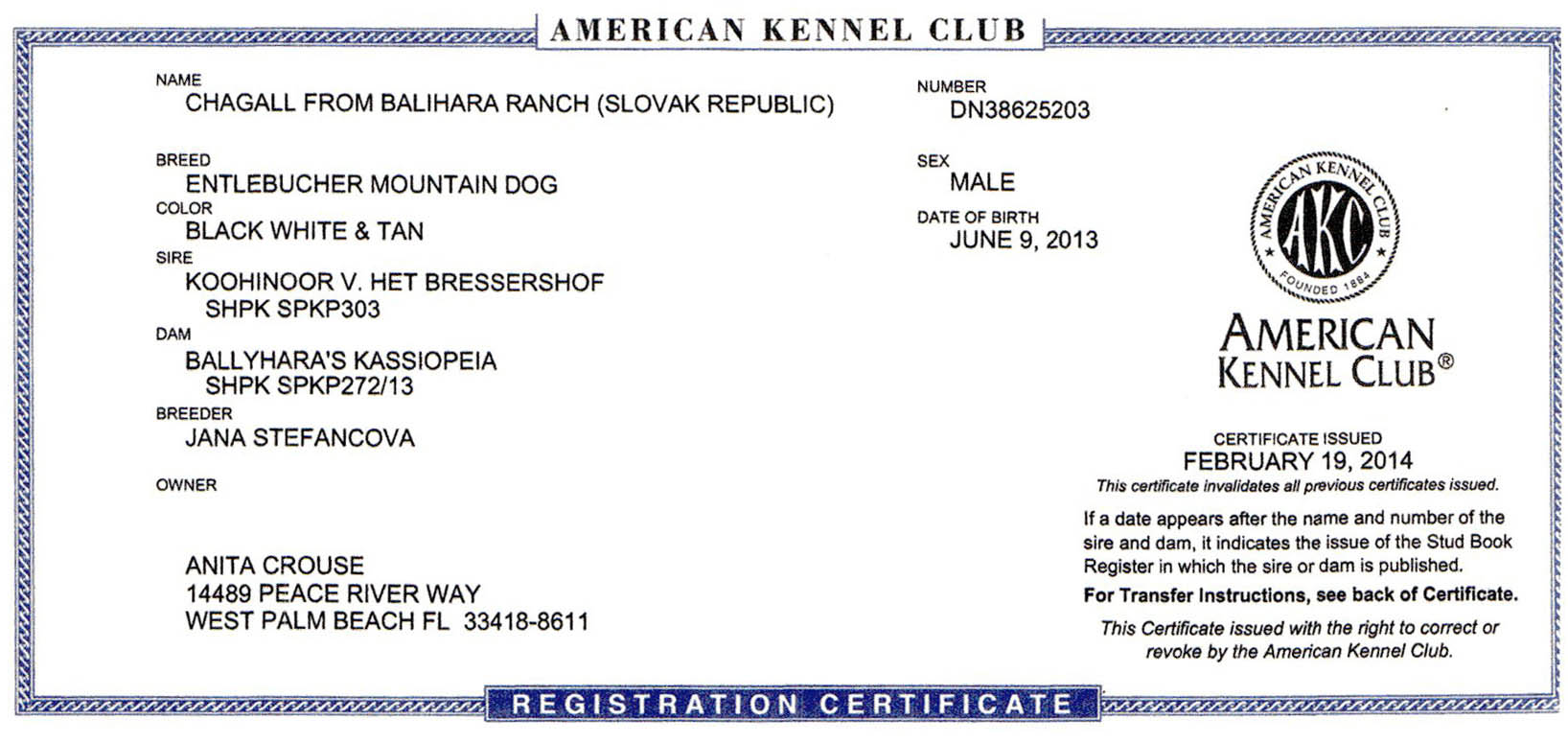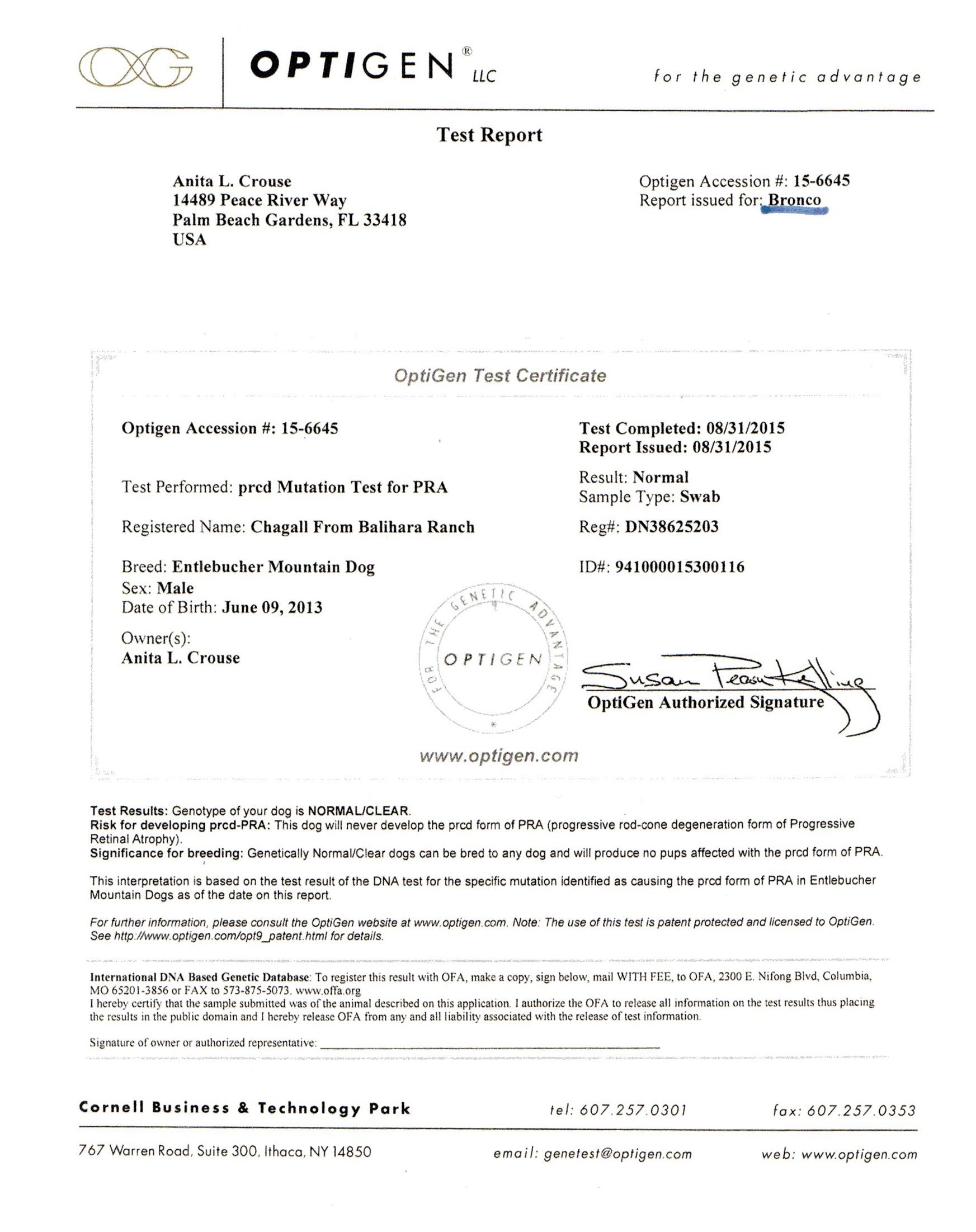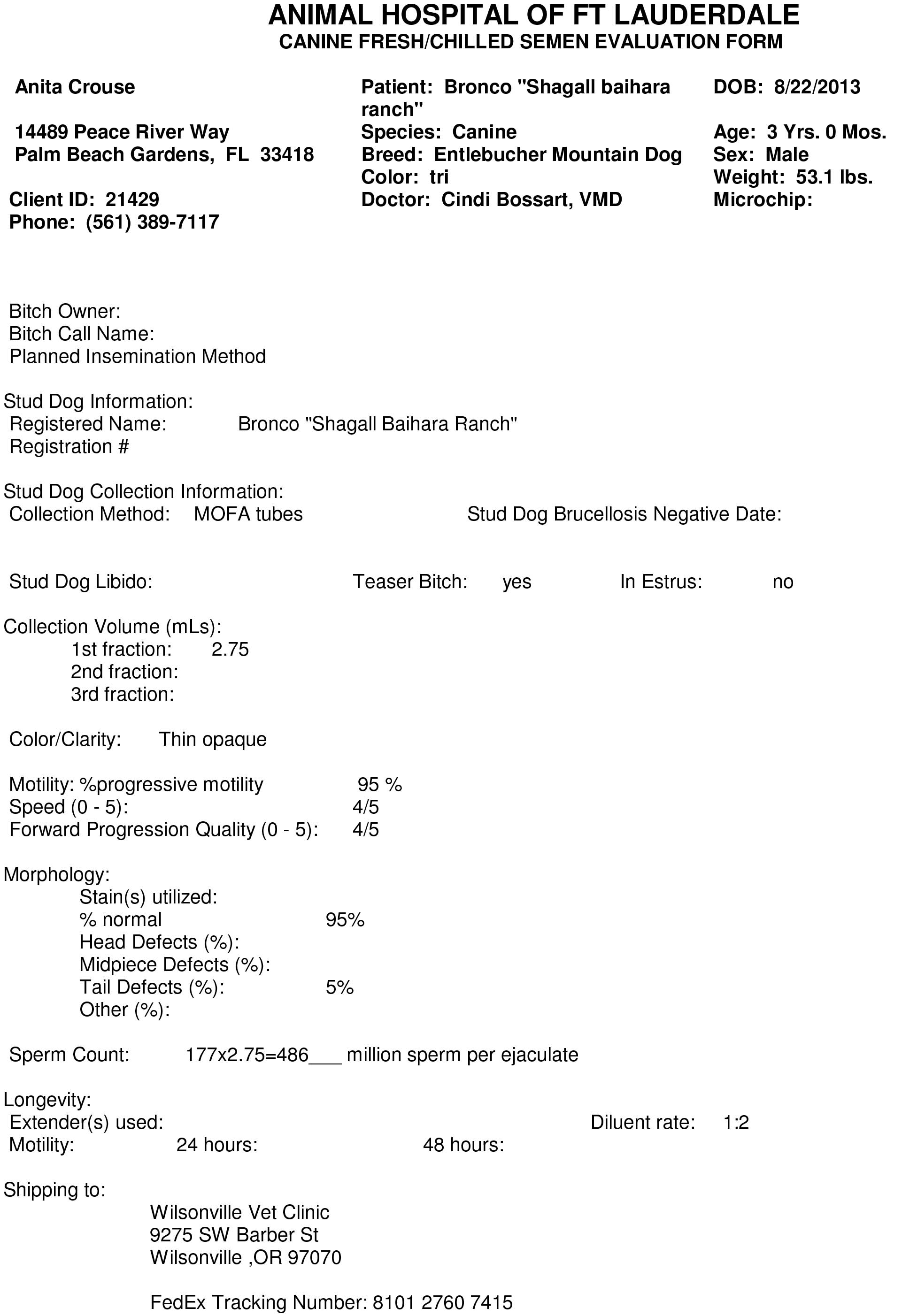 OFA Hips | OFA Eyes | PRA | Semen Analysis 1 & 2 | AKC Registration | Pedigree |
